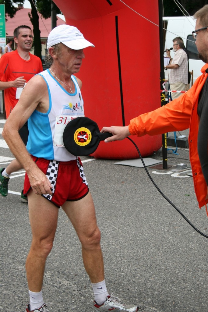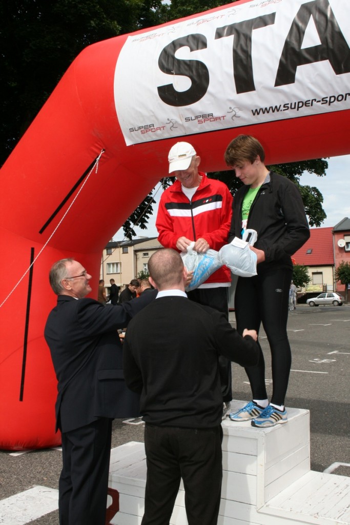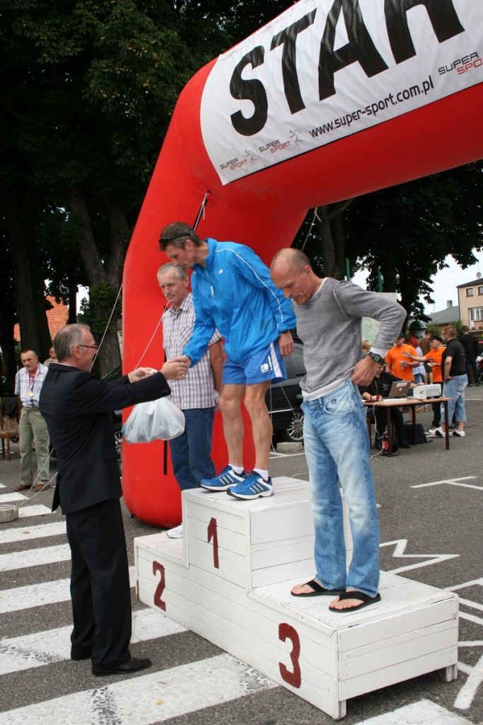 Tuż przed godz. 11.00 przy starcie pojawili się dorośli zawodnicy. Prawo startu miały osoby, które ukończyły 16 lat. Wszyscy wyposażeni byli w numery startowe, zawierające specjalne chipy umożliwiające dokonanie prawidłowego pomiaru czasu. Pilotowani byli przed policyjny radiowóz. Piękny był moment startu, kiedy to biegli wszyscy razem. Po kilku minutach najlepsi zawodnicy nadali tempo, pozostawiając resztę daleko w tyle. Niekwestionowanymi zwycięzcami wśród mężczyzn okazali się Yauheni Palonikau (I miejsce, czas 32:07) i Sergey Krowlajdis (II miejsce, czas 32:14) - obaj z Klubu Achilles Leszno oraz Yuriy Blahodir (III miejsce, czas 32:28) - Finisz Kalisz). Wśród kobiet triumfowały: Patrycja Talar (I miejsce, czas 18:45) – AZSUE Poznań, Marzena Kłuczyńsa (II miejsce, czas 18:56) - Czerniejewo i Anna Swoboda (III miejsce, czas 19:21) – Poznań. Zarówno wśród kobiet, jak i mężczyzn nie pobito ustawionego trzy lata temu rekordu trasy. Zwycięzcy klasyfikacji generalnej otrzymali nagrody pieniężne, a wiekowych – rzeczowe. Nagrodzono też najmłodszych i najstarszych zawodników, stałego biegacza i najlepszego zawodnika z kategorii sprawni inaczej. Wyróżniono również mieszkańców pyzdrskiej gminy. Najlepszy okazał się Nikodem Kryszak, który zajął wśród mężczyzn 36 miejsce. Pochwały należały się również Jolancie Mizerce (34 miejsce wśród kobiet) oraz Radosławowi Parusowi (102 miejsce) i Zbigniewowi Górskiemu (142 miejsce).