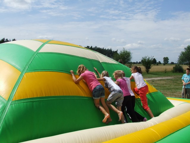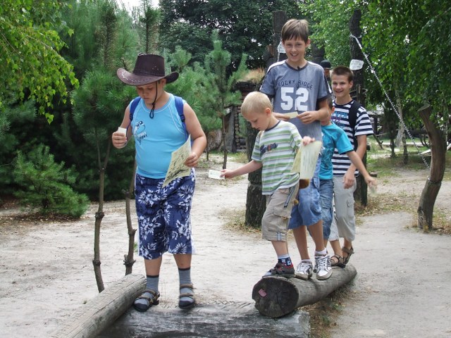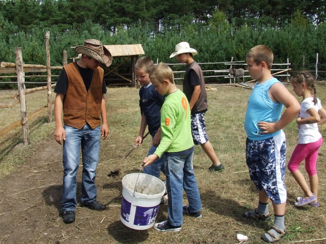 W tym roku organizowano dwa jednakowe turnusy dla grup po 25 osób. Na miły początek dzieciaki pojechały do Aquaparku w Jarocinie. Ciekawa sceneria, nurt rzeki oraz ogromne zjeżdżalnie były rajem dla miłośników wodnych zabaw. Nie mniej ciekawa była przygoda w Wiosce Indiańskiej w Józefowie. Uczestnicy mogli sprawdzić celność oka rzucając tomahawkiem do tarczy, podkową do wiadra i kapeluszem na rogi bizona. Po tej małej rozgrzewce przyszedł czas na tor przeszkód pod którym, jak zapewniał szeryf wioski, zagnieździły się jaszczurki i krokodyle. Na szczęście sprawność fizyczna i zwinność dzieciaczków uchroniła je przed spotkaniem oko w oko z gadami. Dużym zainteresowaniem cieszyła się praca związana z płukaniem złota oraz konkurencje sportowe. Kolejny dzień to zwiedzanie gospodarstwa agroturystycznego w Hermanowie. Znajduje się tam stadnina koni, mini zoo ze strusiami, papugami i kozami, które przechadzając się swobodnie między uczestnikami półkolonii sprawiły im wielką frajdę. Na zakończenie przygody pieczono kiełbaski w ognisku. W czwartek półkoloniści udali się do Cinema City w Poznaniu. Zwieńczeniem turnusu było coś, co dzieciaki wręcz uwielbiają – Bajkoland w Kaliszu. To miejsce zabaw przepełnione dmuchanymi zamkami i basenami z piłeczkami.