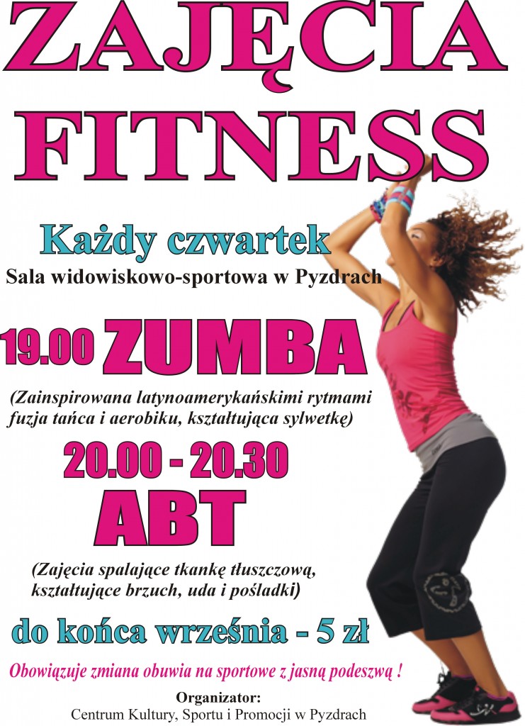 Informujemy wszystkie Panie, że po wakacyjnej przerwie wznawiamy zajęcia fitnessu – Zumbę i ABT. Pierwsze spotkanie odbędzie się 13 września (czwartek) w sali widowiskowo-sportowej. Na godz. 19.00 zapraszamy na Zumbę, a na 20.00 na ABT.