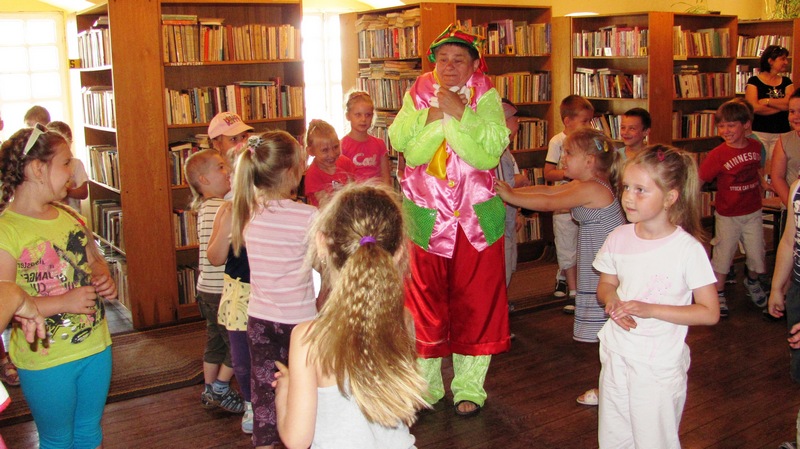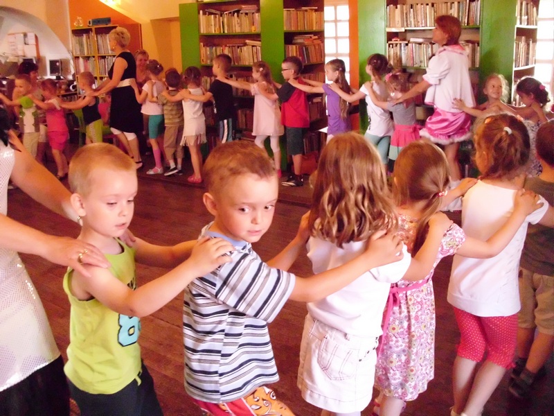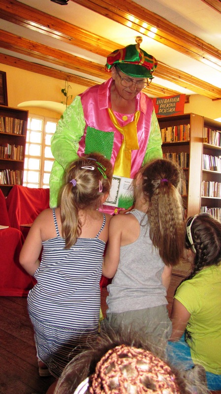 Wesoło bawiły się i śpiewały podczas zabaw i pląsów wraz z przebranymi w kolorowe stroje czytającymi.