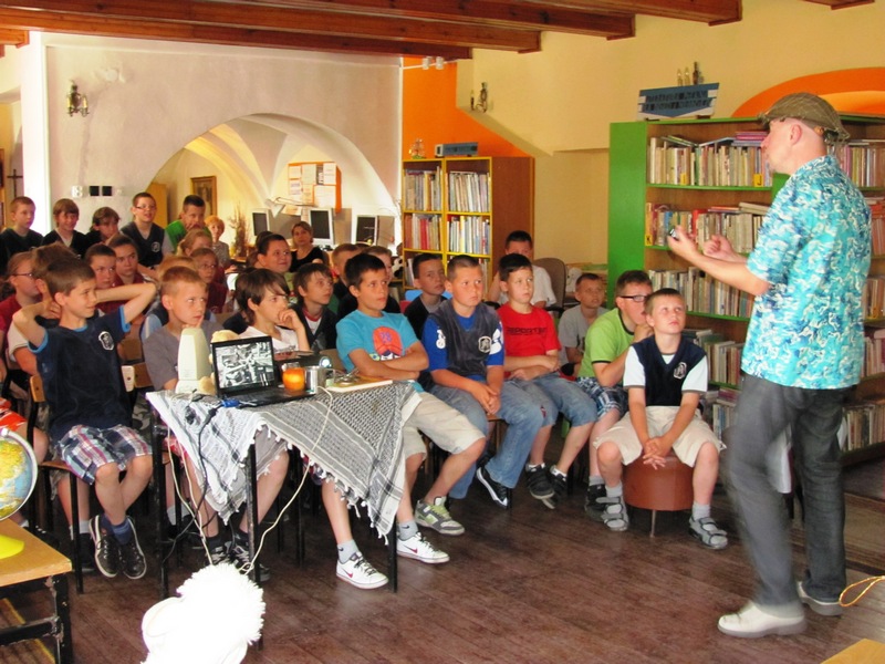 Pan Łukasz spotkał się z pięcioma grupami dzieci i młodzieży z Pyzdrskiej szkoły podstawowej i gimnazjum.