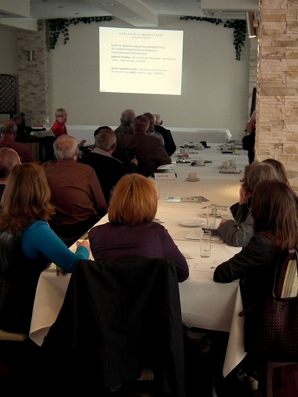 Ewa Krzyżanowska – Walaszczyk z SARP oddział w Poznaniu przedstawiła spore materiały bibliograficzne związane z tematem historycznej mapy, jak i materiał inwentarzowy dotyczący zasobów map w archiwach polskich i zagranicznych. Paweł Śliwa, z-ca dyrektora Zespołu Parków Krajobrazowych w bogatej prezentacji omawiał role Pyzdr w rozwoju parku. Mało kto pamięta, że pierwotnie nosił on nazwę Pyzdrski Park Krajobrazowy. Ostatnie wystąpienie dotyczyło współczesnego wykorzystania map wieloskalowych na terenach środkowej Wielkopolski. Temat ten omówili Waldemar Sztukiewicz i Lech Kaczmarek z SGP w Poznaniu.