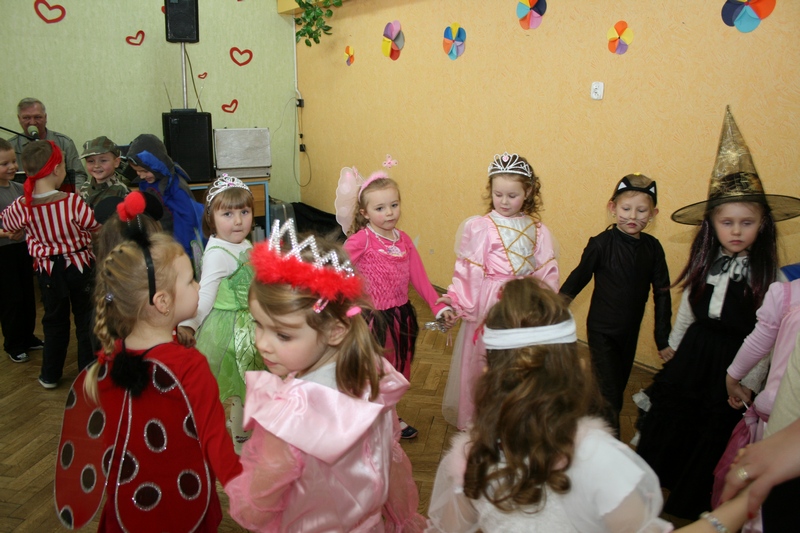 Dzieci z niecierpliwością oczekiwały wydarzania. Nie dziwne, bowiem dostarcza ono wielu przeżyć i zadowolenia. Bal rozpoczął się polonezem. Potem przyszedł czas na beztroską zabawę. Dzieciaki brały udział w różnych animacjach. Tańczyły też w parach i kółeczkach. Wielką radość można było dostrzec w ich oczach, gdy dumnie prezentowały swoje stroje. Wśród dziewczynek dominowały księżniczki, wróżki, biedronki, pszczółki i czarownice. Była nawet Fiona. Chłopcy przebrali się za policjantów, piratów, spidermanów i rajdowców.