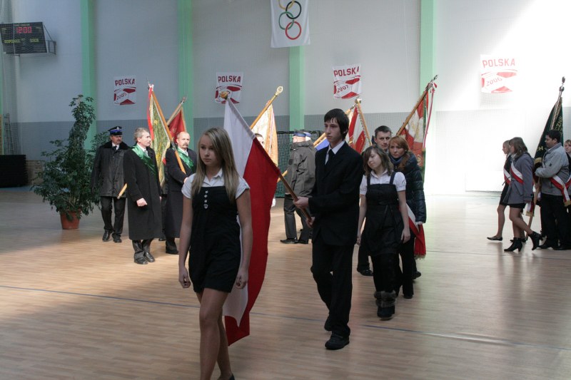 Dalsza część obchodów obyła się w sali widowiskowo-sportowej. Pieśni patriotyczne i legionowe zagrała Orkiestra Dęta OSP i CKSiP, a młodzież i dzieci z Zespołu Szkolno-Przedszkolnego przedstawili najważniejsze wydarzenia związane z odzyskaniem przez Polskę Niepodległości.