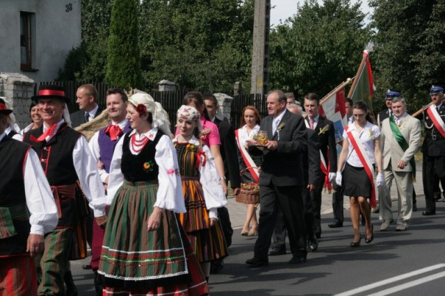 Tradycyjnie imprezę otworzył barwny korowód dożynkowy. Publiczność zgromadzona na placu miała, co podziwiać, gdyż korowód prezentował się okazale. Na miejscu przywitał przybyłych gości i mieszkańców ks. kanonik Ryszard Kopczyński proboszcz Parafii Pyzdry, który odprawił Mszę Świętą Dziękczynną.