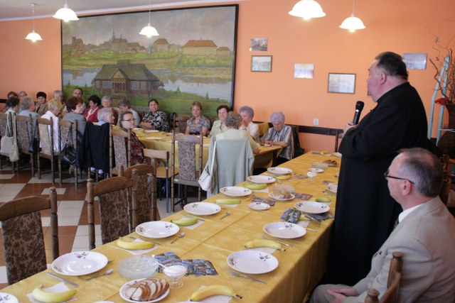 Uroczystość miała charakter rodzinny. Na stole królowało domowe ciasto oraz kotlety mielone z kapustą. Nim emeryci przystąpili do konsumpcji wysłuchali życzeń od zaproszonych gości. Na temat znaczenie matki w życiu każdego człowieka wypowiadał się burmistrz Krzysztof Strużyński i ks. prałat Jan Andrzejczak i ks. prefekt Janusz Popowski. Księdzu proboszczowi emeryci wręczyli kwiaty i podarek z racji 50-lecia święceń kapłańskich.
