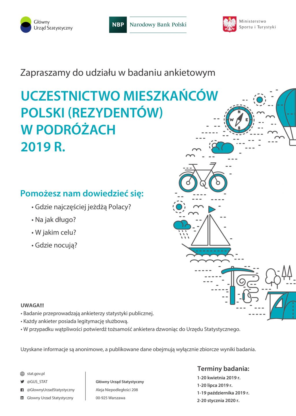 Urząd Statystyczny w Poznaniu informuje, iż w dniach 1-20 kwietnia br., w wylosowanych gospodarstwach domowych, realizowane będzie badanie ankietowe ,,Uczestnictwo mieszkańców Polski w podróżach".