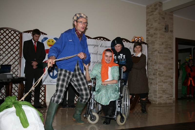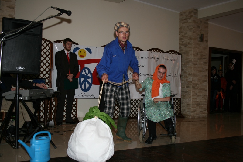Kierownik WTZ Elżbieta Janicka przywitała tłumnie zgromadzonych oraz podziękowała w imieniu własnym jak i uczestników za pomoc finansową okazaną placówce. Do podziękowań dołączyli się uczestnicy WTZ którzy rozbawili do łez zgromadzoną publikę programem artystycznym. Przedstawienie pt. „Rzepka” oraz wiązanka taneczna nagrodzona została gromkimi brawami. Rozbawiona publika ochoczo zatańczyła „Kaczuchy”, a później konsumowali kulinarne specjały szefa kuchni.