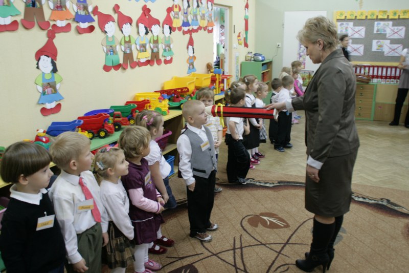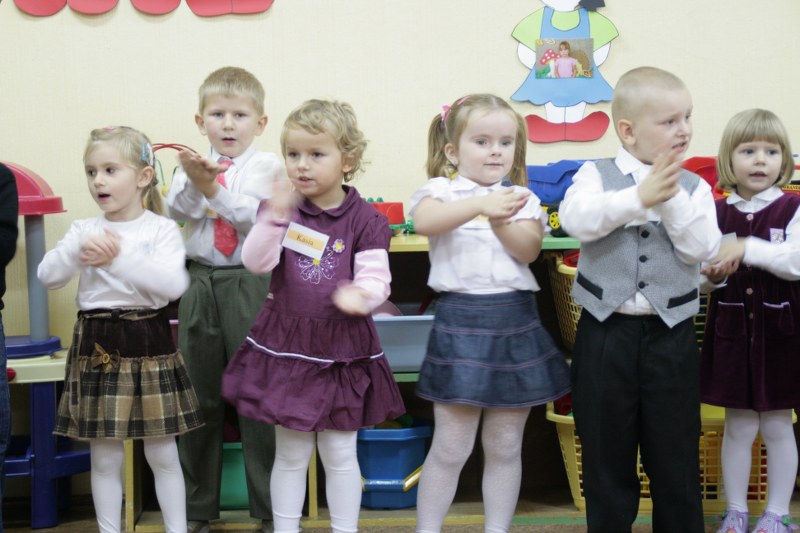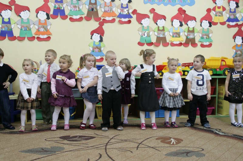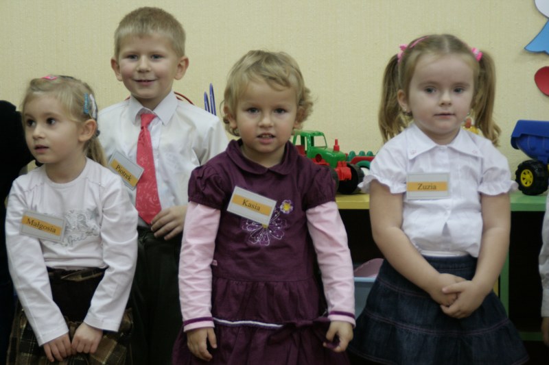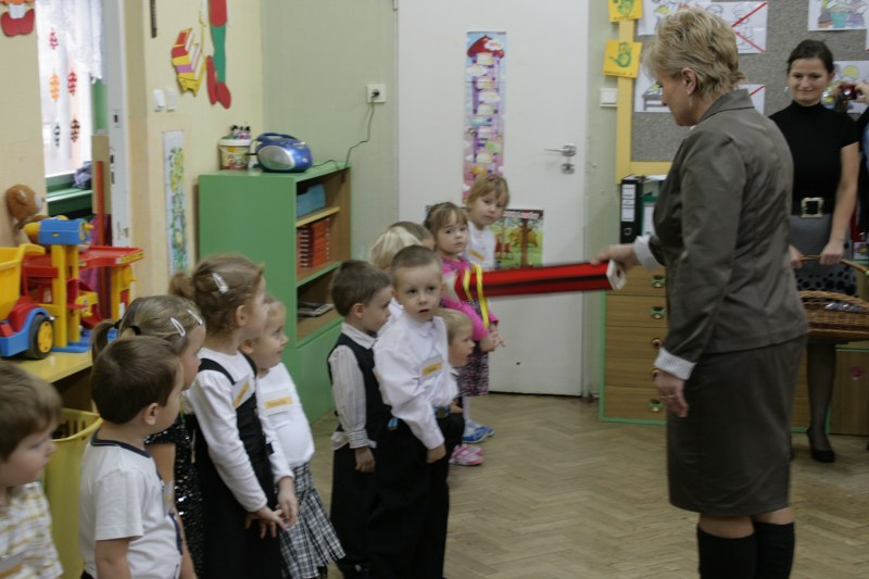 Spotkanie miało na celu nie tylko przyjęcie dzieci do grona przedszkolaków, ale także tworzenie przyjaznej atmosfery we wspólnej zabawie z rodzicami. Barbara Szymańska, dyrektor placówki, już na wstępie uroczystości oznajmiła, że zarówno dzieci, jak i rodzicie zdali egzamin. Chodziło oczywiście o pierwszą rozłąkę. Dzieciaki przyzwyczaiły się bowiem do nowego miejsca i chętnie do niego przychodzą. Fachową opiekę wychowawczą i edukacyjną zapewniają panie – Monika Walicka oraz Barbara Piątkiewicz. Małe szkraby na brak ciekawych zajęć z pewnością nie narzekają. Z każdym dniem dowiadują i uczą się czegoś nowego.