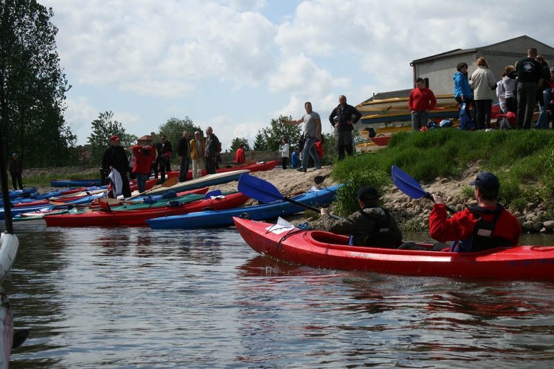 Majowy spływ stał się tradycją i ciekawą formą spędzenia wolnego czasu. Osoby, które raz wzięły w nim udział, pojawiały się na kolejnych. Mało tego, na następne edycje zabierały znajomych. Tak więc zainteresowanie pyzdrskim spływem z roku na rok rosło. Nad tegorocznym otwarciem sezonu zawisły czarne chmury. Prognoza pogody była nieciekawa. Spadek temperatury i wiszący w powietrzu deszcz sprawił, że wiele osób miało wątpliwości. Okazało się jednak, że dla odważnych świat należy. Uczestnicy już od godz. 10.00 zbierali się na przystani wodniackiej w Lądzie. Po zapoznaniu się z regulaminem spływu przystępowali do wodowania kajaków. Na całej trasie wiatr dawał się we znaki. Niemożliwe było płynięcie z nurtem bez wiosłowania, co dla niektórych było udręką. Większość jednak dawała sobie radę z intensywnym pećkowaniem. Poczuli smak takiej prawie ekstremalnie przygody. Nad bezpieczeństwem czuwali członkowie Perkoza i osoby zaprzyjaźnione reagując na każde niepokojące sygnały.