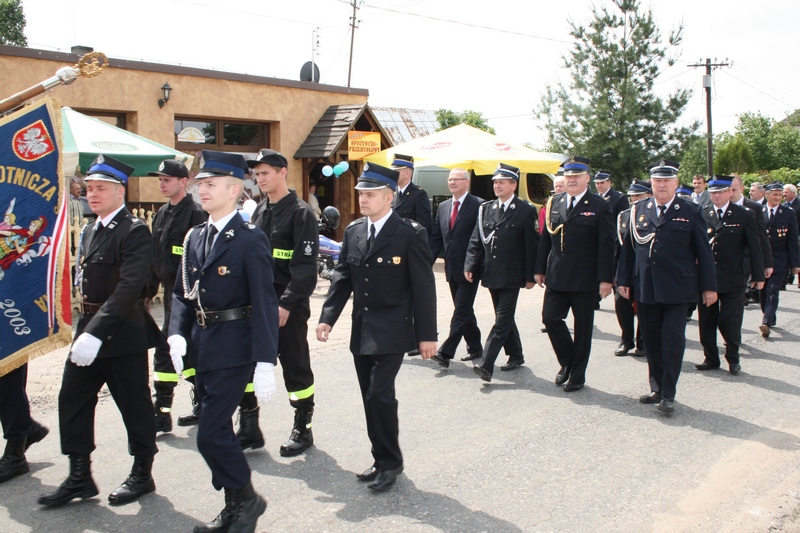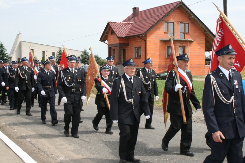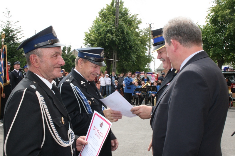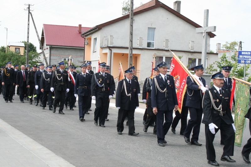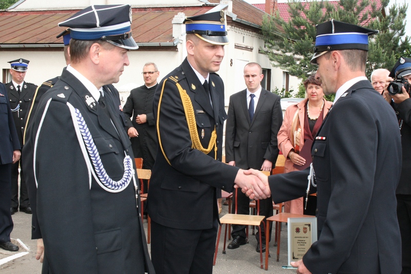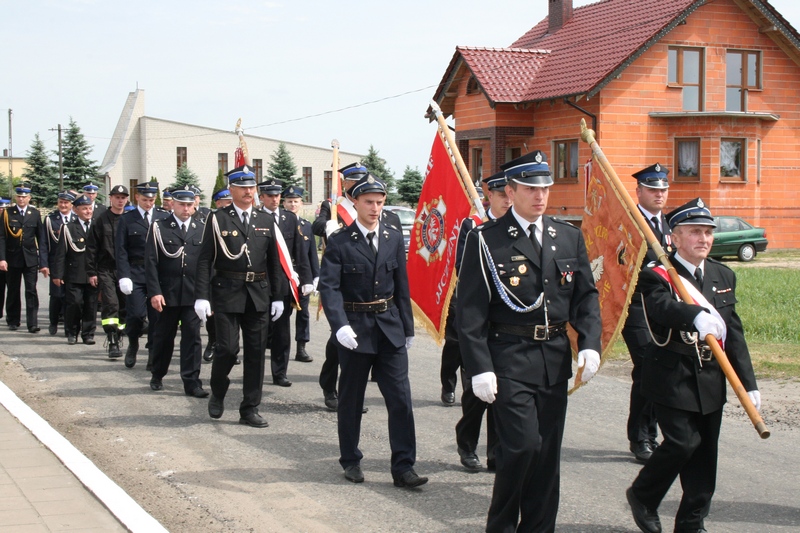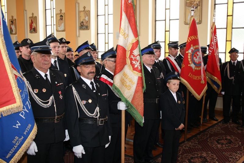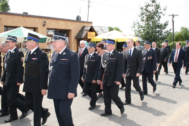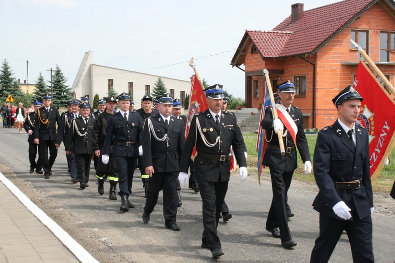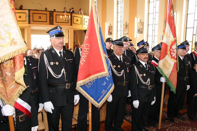 Zaproszeni goście i cała brać strażacka spotkali się najpierw przy remizie, by z stamtąd przy asyście orkiestry dętej i pocztów sztandarowych udać się do pobliskiej świątyni na dziękczynną mszę świętą. Potem powrócili na plac strażacki by uczestniczyć w kolejnych ceremoniałach. Dowódca jednostki wydał komendę Tadeuszowi Tomaszewskiemu, posłowi na Sejm RP o gotowości pododdziałów, a burmistrz Pyzdr Krzysztof Strużyński powitał zgromadzonych. Następnie wyraził swe zadowolenie z działalności jubilatki. - Strażacka służba to szkoła charakterów, męstwa i hartu ducha oraz poświęcenia dla innych. Wy stajecie naprzeciw żywiołom w walce o życie, zdrowie i mienie mieszkańców naszej gminy – oznajmił i dodał: - Podejmujecie ryzyko bez względu na własne bezpieczeństwo. Dajecie tym samym dowody największej odwagi. Wyrażam więc podziękowanie za wasze wzorowe wypełnianie obowiązków oraz ofiarną służbę na rzecz społeczności lokalnej.