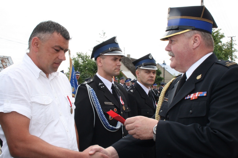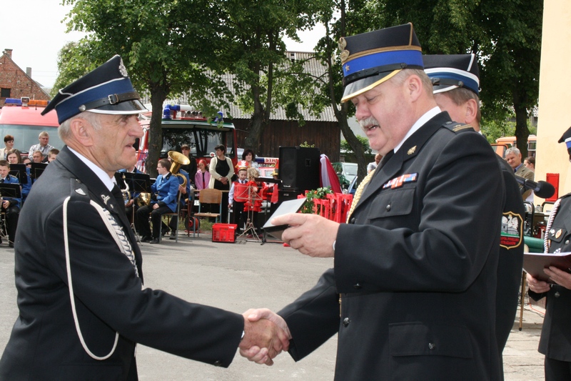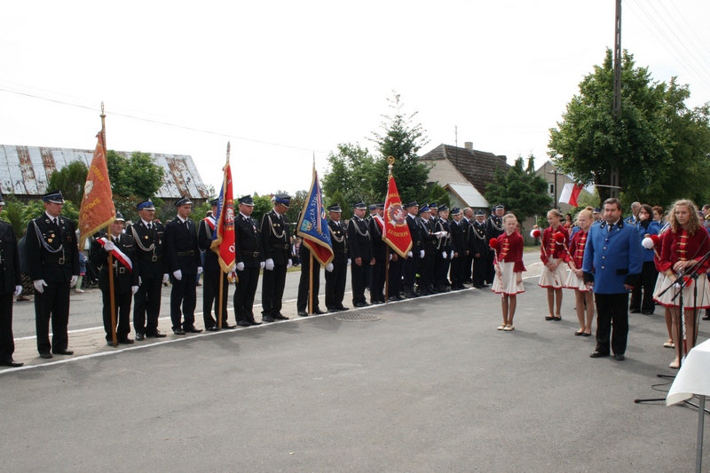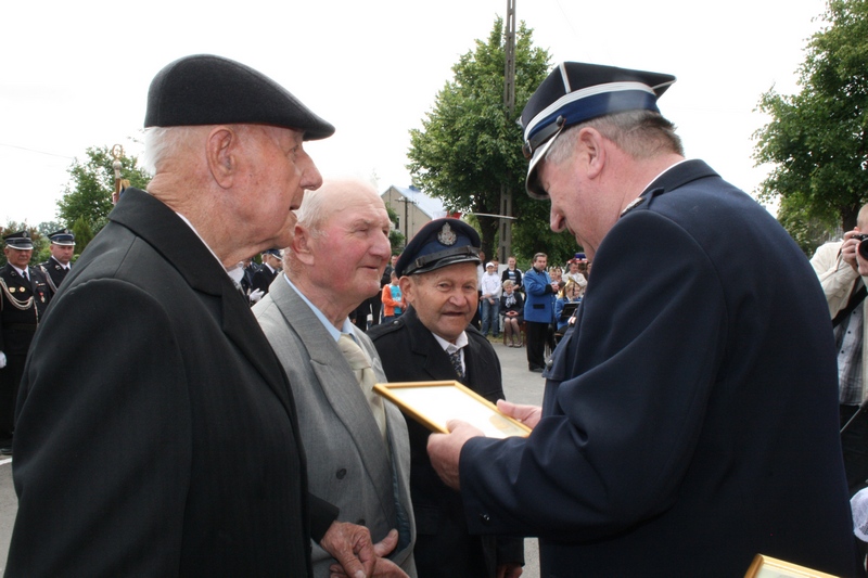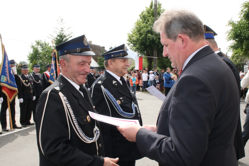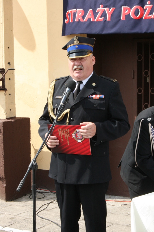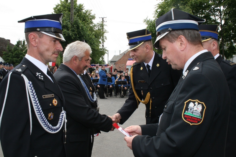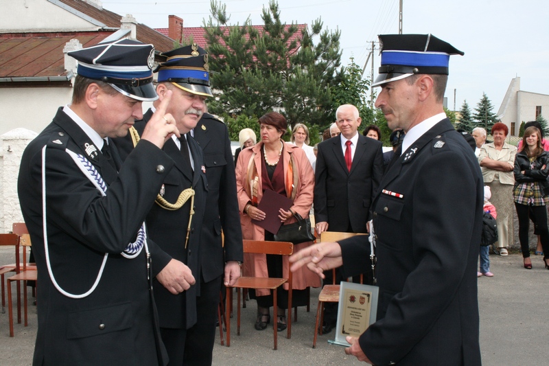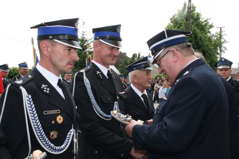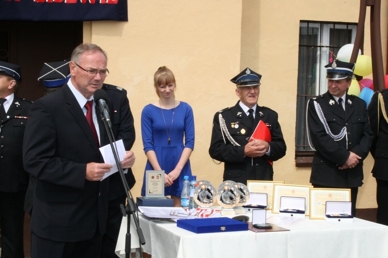 Zaproszeni goście i cała brać strażacka spotkali się najpierw przy remizie, by z stamtąd przy asyście orkiestry dętej i pocztów sztandarowych udać się do pobliskiej świątyni na dziękczynną mszę świętą. Potem powrócili na plac strażacki by uczestniczyć w kolejnych ceremoniałach. Dowódca jednostki wydał komendę Tadeuszowi Tomaszewskiemu, posłowi na Sejm RP o gotowości pododdziałów, a burmistrz Pyzdr Krzysztof Strużyński powitał zgromadzonych. Następnie wyraził swe zadowolenie z działalności jubilatki. - Strażacka służba to szkoła charakterów, męstwa i hartu ducha oraz poświęcenia dla innych. Wy stajecie naprzeciw żywiołom w walce o życie, zdrowie i mienie mieszkańców naszej gminy – oznajmił i dodał: - Podejmujecie ryzyko bez względu na własne bezpieczeństwo. Dajecie tym samym dowody największej odwagi. Wyrażam więc podziękowanie za wasze wzorowe wypełnianie obowiązków oraz ofiarną służbę na rzecz społeczności lokalnej.