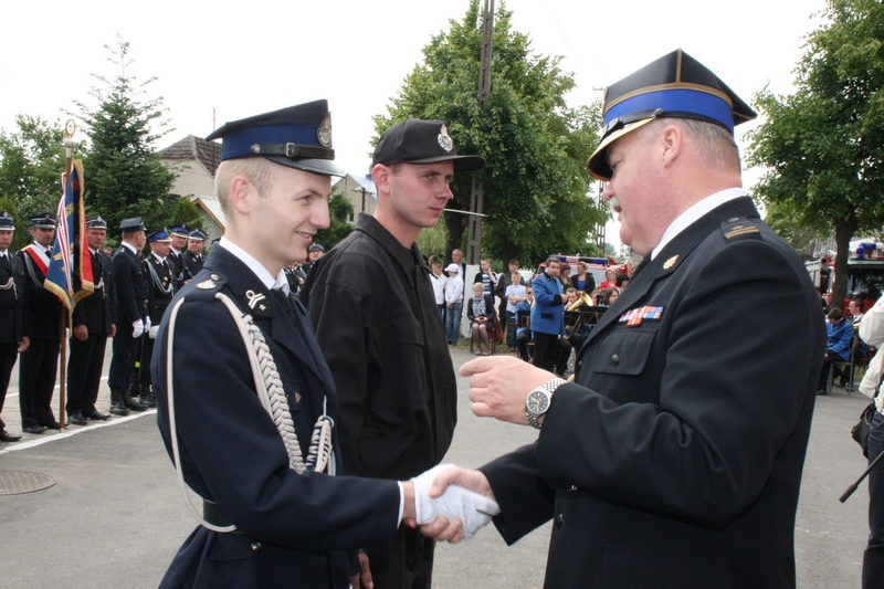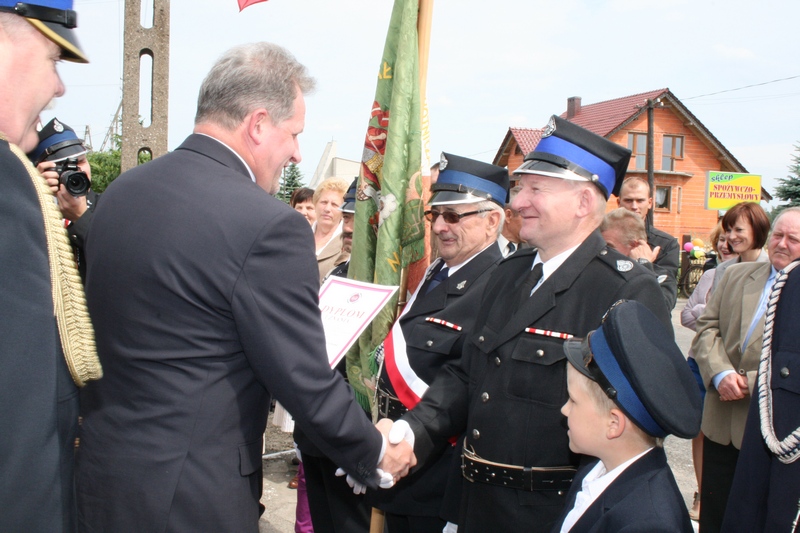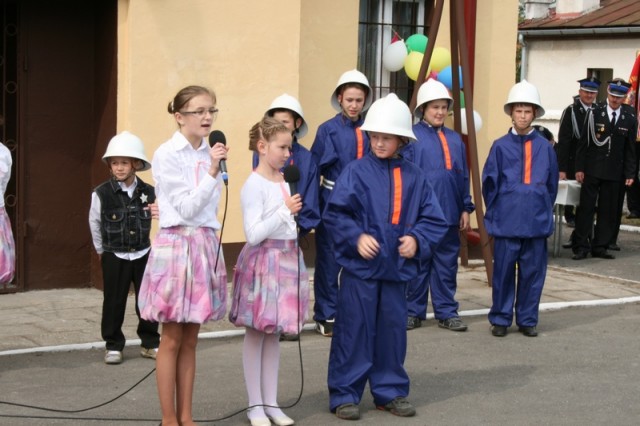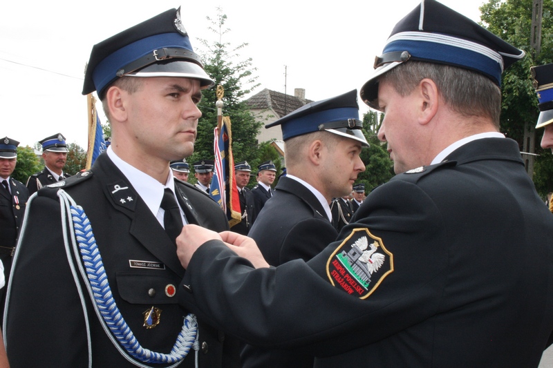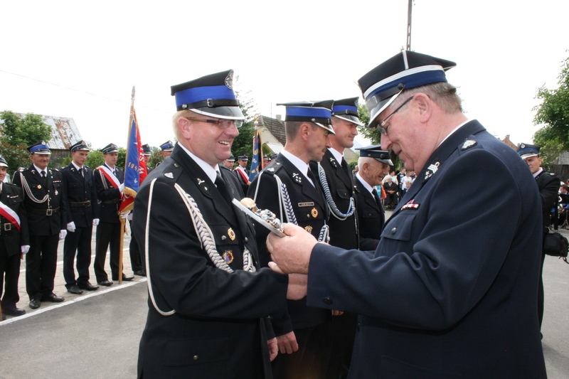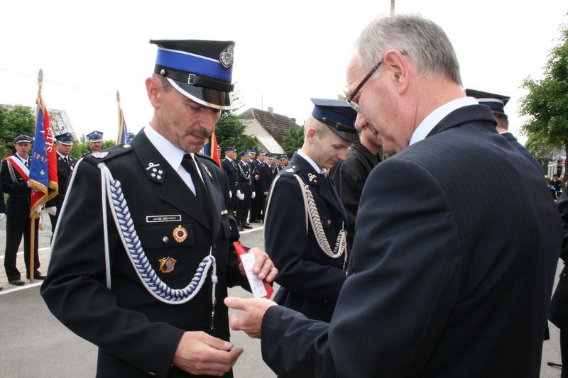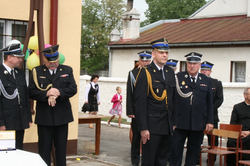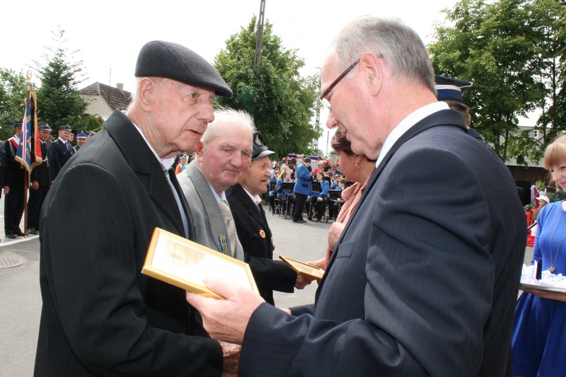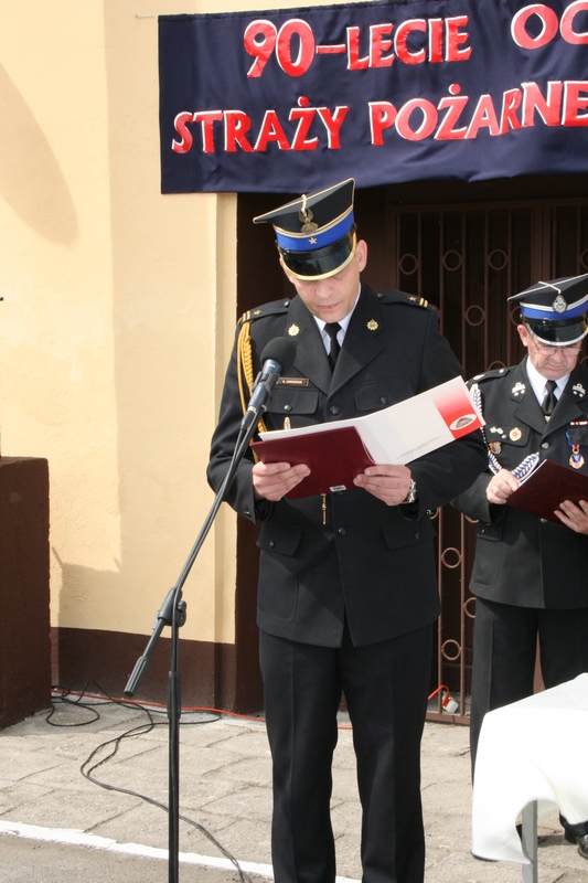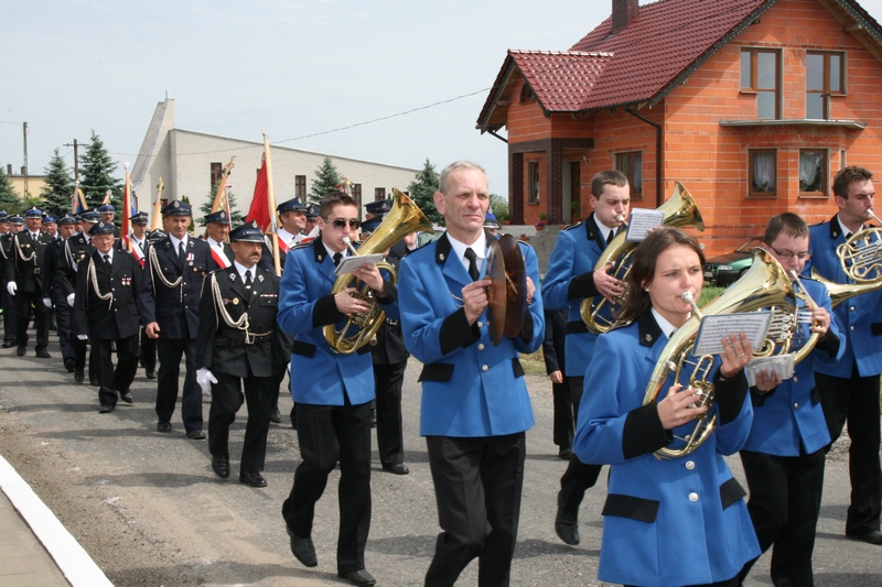 Zaproszeni goście i cała brać strażacka spotkali się najpierw przy remizie, by z stamtąd przy asyście orkiestry dętej i pocztów sztandarowych udać się do pobliskiej świątyni na dziękczynną mszę świętą. Potem powrócili na plac strażacki by uczestniczyć w kolejnych ceremoniałach. Dowódca jednostki wydał komendę Tadeuszowi Tomaszewskiemu, posłowi na Sejm RP o gotowości pododdziałów, a burmistrz Pyzdr Krzysztof Strużyński powitał zgromadzonych. Następnie wyraził swe zadowolenie z działalności jubilatki. - Strażacka służba to szkoła charakterów, męstwa i hartu ducha oraz poświęcenia dla innych. Wy stajecie naprzeciw żywiołom w walce o życie, zdrowie i mienie mieszkańców naszej gminy – oznajmił i dodał: - Podejmujecie ryzyko bez względu na własne bezpieczeństwo. Dajecie tym samym dowody największej odwagi. Wyrażam więc podziękowanie za wasze wzorowe wypełnianie obowiązków oraz ofiarną służbę na rzecz społeczności lokalnej.