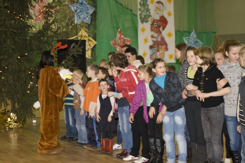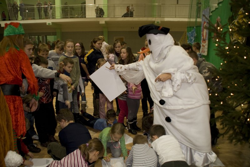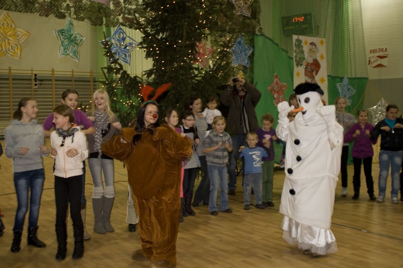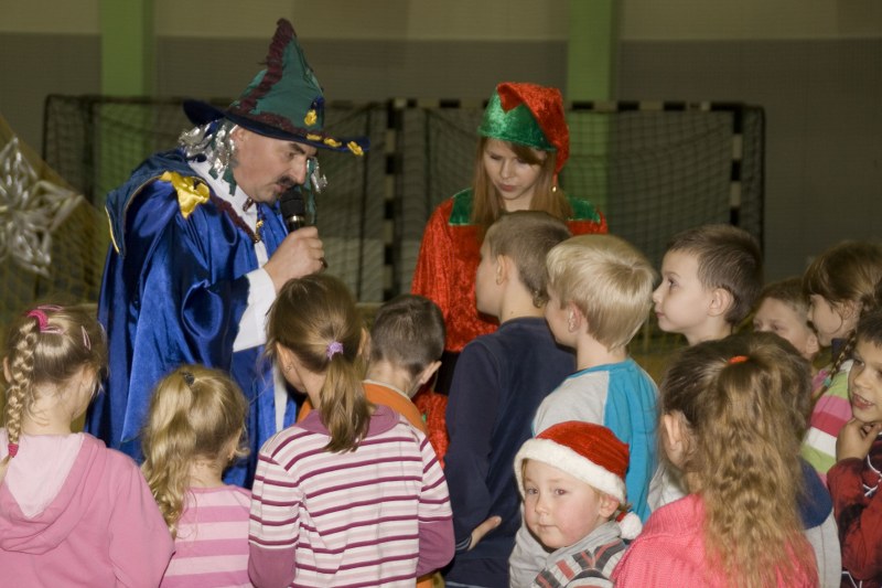 Dzieciaki zmartwiły się tą informacją. Na prośbę prowadzącego zdecydowały się pomóc w poszukiwaniach porwanego przez złą czarownicę Mikołaja. W akcji tej, mającej formę zabawy i gry, uczestniczyły niemal wszystkie maluchy. Zarówno te młodsze, jak i starsze… Szukając Mikołaja przemierzały cały świat. Odwiedzały różne kraje, w których otrzymywały wskazówki o pobycie świętego. Wcześniej jednak musiały wykonywać odpowiednie zadania. Najwięcej frajdy przyniosło wymyślanie zaklęć, rysowanie portretu pamięciowego oraz zabawa śnieżna. Najważniejsze, że przy pomocy dzieci oraz postaci bajkowych udało się odnaleźć Mikołaja, który później rozdawał cukierki, ufundowane przez Komisję ds. PiRPA.
