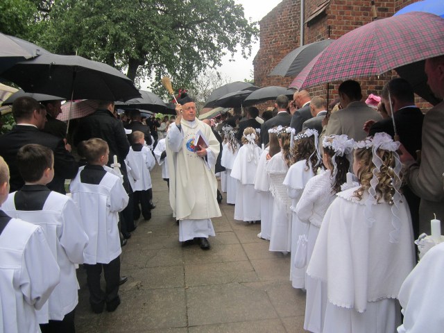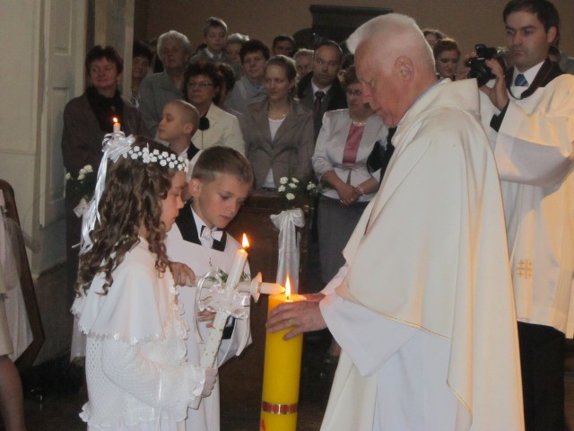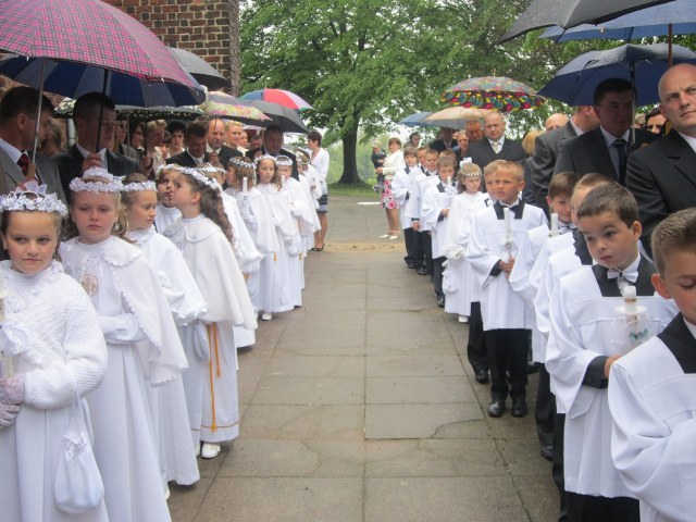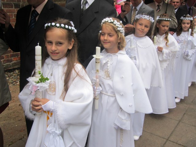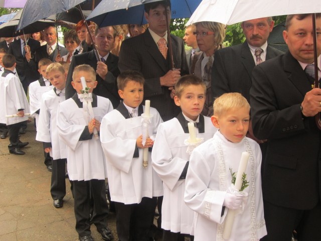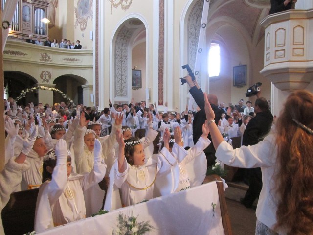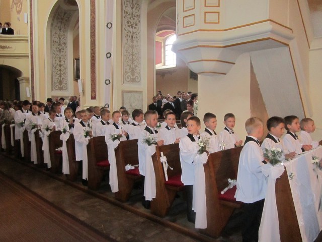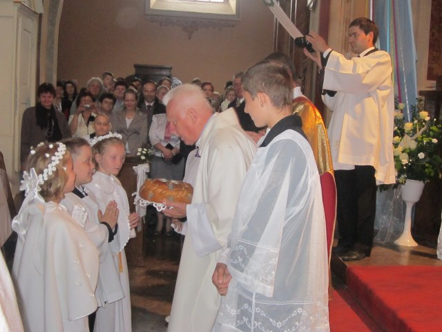 Po procesyjnym wejściu do kościoła, w obecności wszystkich wiernych, rodzice dokonali błogosławieństwa swych dzieci. Dekoracja świątyni emblematami eucharystycznymi podkreślała ważność wydarzenia. Chodziło o to, aby pierwsze pełne uczestnictwo dziecka we mszy świętej, kiedy to przyjmuje po raz pierwszy Jezusa do swego serca, pozostawiło dogłębne przeżycie i wspomnienia.
