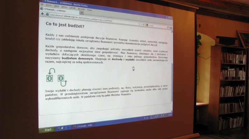 Podczas kolejnych 4 szkoleń można będzie zdobyć wiele ciekawych informacji na temat przeliczania walut, wyboru banku, zakładania lokat, robienia przelewów przez Internet, wyliczanie rat, ubezpieczenia mieszkania, oszczędzania, robienia zakupów przez Internet , możliwości zarządzania nim i korzystania z usług bankowych. To i wiele więcej czeka na Państwa w bibliotece. Szkolenie jest całkowicie bezpłatne.
