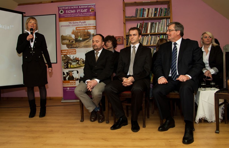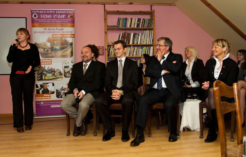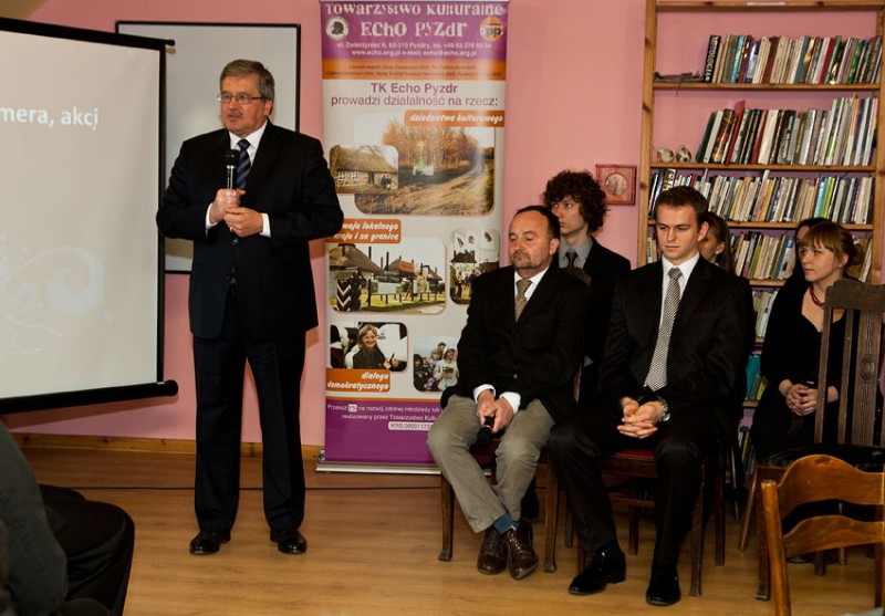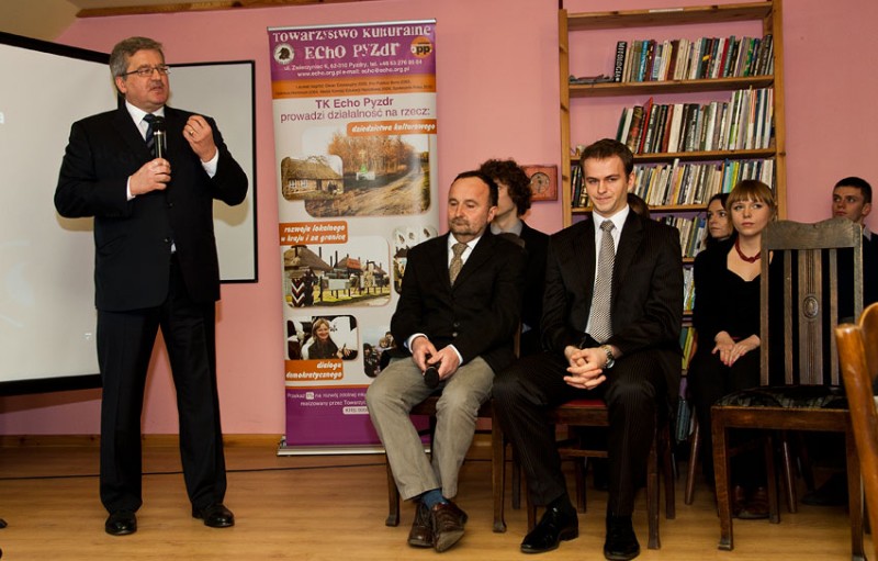 Prezydent przyjechał w piątek do Pyzdr, gdzie rozpoczął swoją wizytę w Wielkopolsce. Spotkał się z zarządem Towarzystwa Kulturalnego "Echo Pyzdr", kilkudziesięcioma jego stypendystami i władzami miasta. W wystąpieniu prezydent wielokrotnie nawiązywał do historii, kiedy - podobnie jak Pyzdry - wiele miejscowości było położonych na dawnym pograniczu zaborów rosyjskiego i pruskiego. Zdaniem prezydenta, na pograniczu jedni potrafią skorzystać z szansy, inni nie. - Dokonania w zakresie funduszu stypendialnego i integracji tego środowiska świadczą o tym, że bycie na pograniczu daje szanse umiejętnego wykorzystywania różnych źródeł, które nie muszą, ale mogą nas wzbogacać – ocenił.