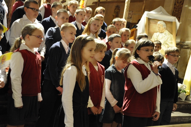 27 kwietnia wierni uczestniczyli w uroczystej mszy świętej, odprawionej w intencji papieża Polaka. Liturgia koncelebrowana była przez księży z dekanatu zagórowskiego, a oprawę muzyczną zapewniła pyzdrska orkiestra dęta. Wcześniej uczniowie Zespołu Szkolno-Przedszkolnego zaprezentowali montaż słowno-muzyczny dotyczący życia Ojca Świętego.